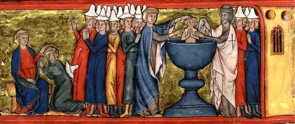 ზემოთ ნახატზე: ებრაელთა ნათლობა. აპოკალიფსის თემატიკიდან